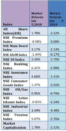 - Nigerian Stock Exchange Daily Market Summary January 3 2019