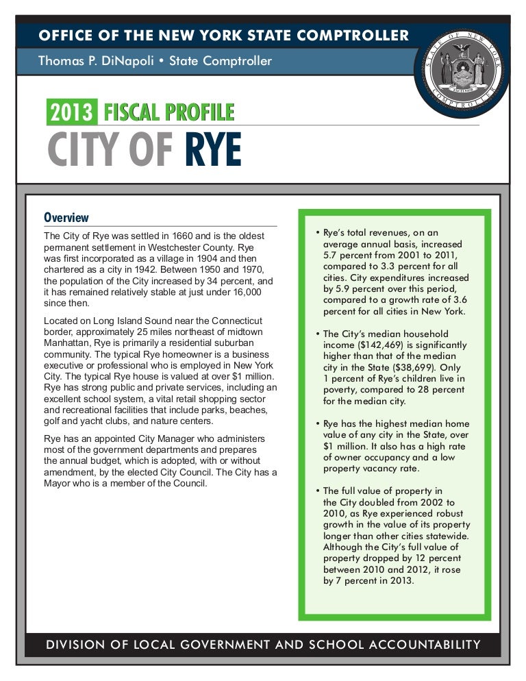- Fiscal Profile Of The City Of Rye